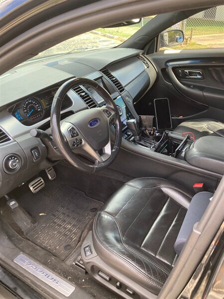 This 2015 Ford Taurus SHO is a powerful and stylish sedan that boasts a turbocharged EcoBoost 3.5L V6 engine, delivering 365 horsepower and 350 ft. lbs. of torque. Equipped with a smooth-shifting automatic transmission, this sedan offers a thrilling driving experience. The factory default features include a premium sound system, leather upholstery, dual-zone automatic climate control, keyless entry, and a user-friendly infotainment system with a touchscreen display. Safety features such as antilock brakes, stability control, and a comprehensive set of airbags come standard in this vehicle. With a fuel efficiency of 17 MPG in the city and 25 MPG on the highway, the 2015 Ford Taurus SHO strikes a balance between performance and practicality. This vehicle is in excellent overall condition, making it a compelling choice for those seeking a blend of comfort and power in their daily commute.